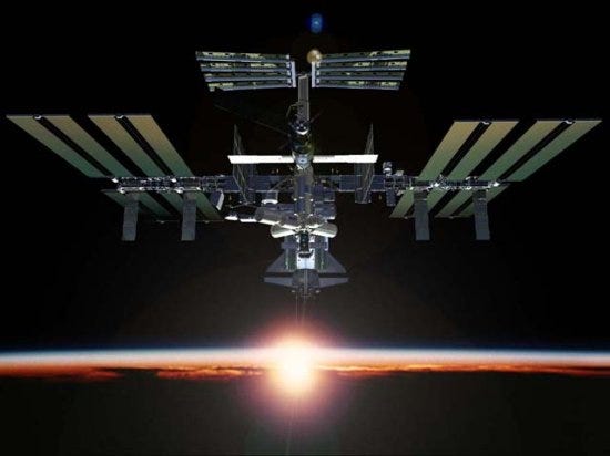 In just 24 hours the space station makes 16 orbits around the earth. It thus experiences 16 sunrises and sunsets.