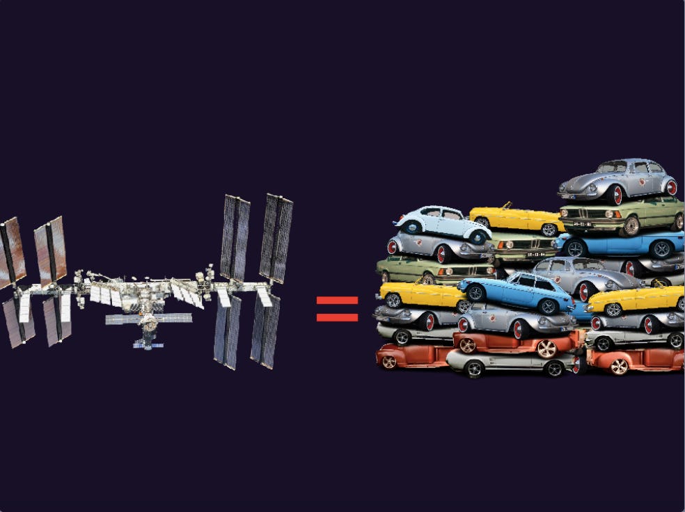 The ISS weighs a whopping 420,000kg - that's about the same as 320 cars.
