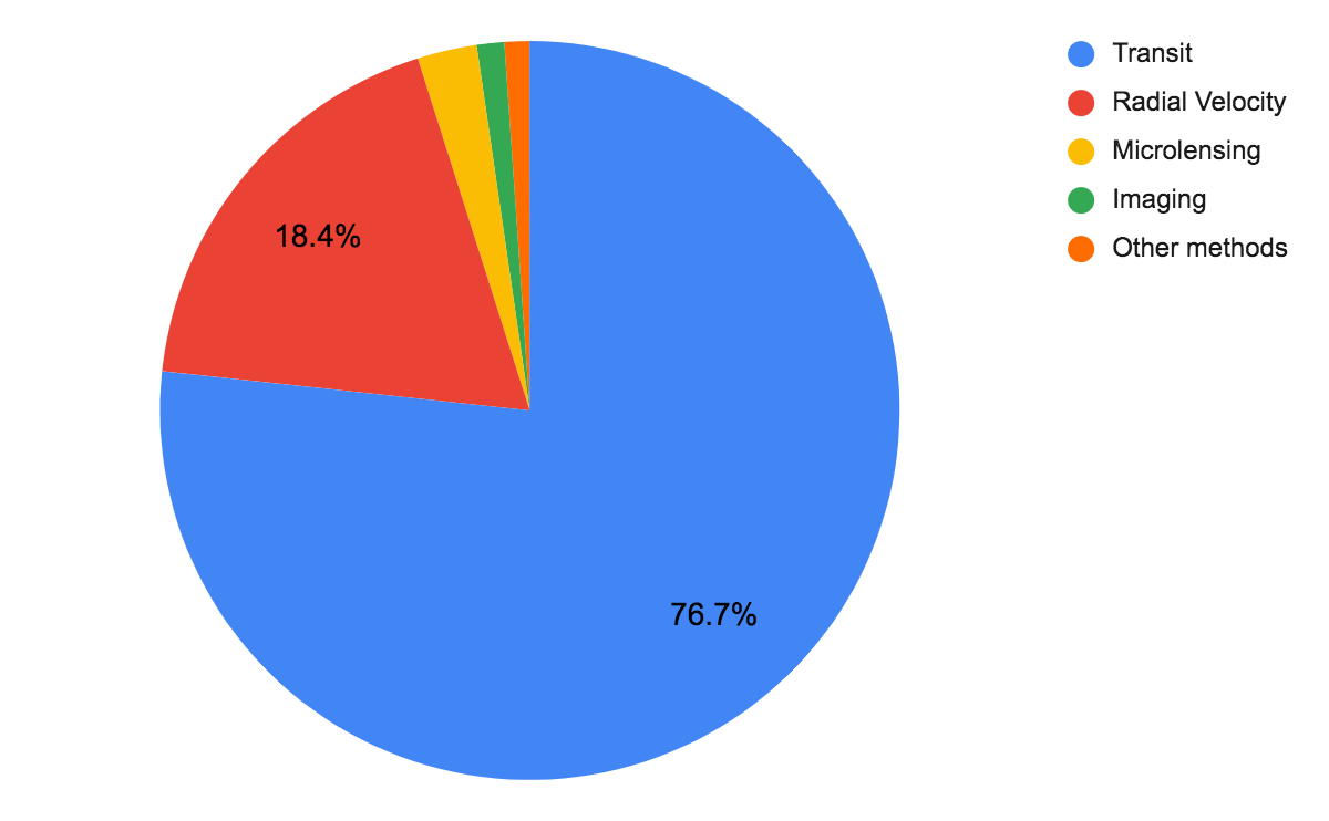 Here is a graph that shows the percentage of exoplanets found using the above methods.