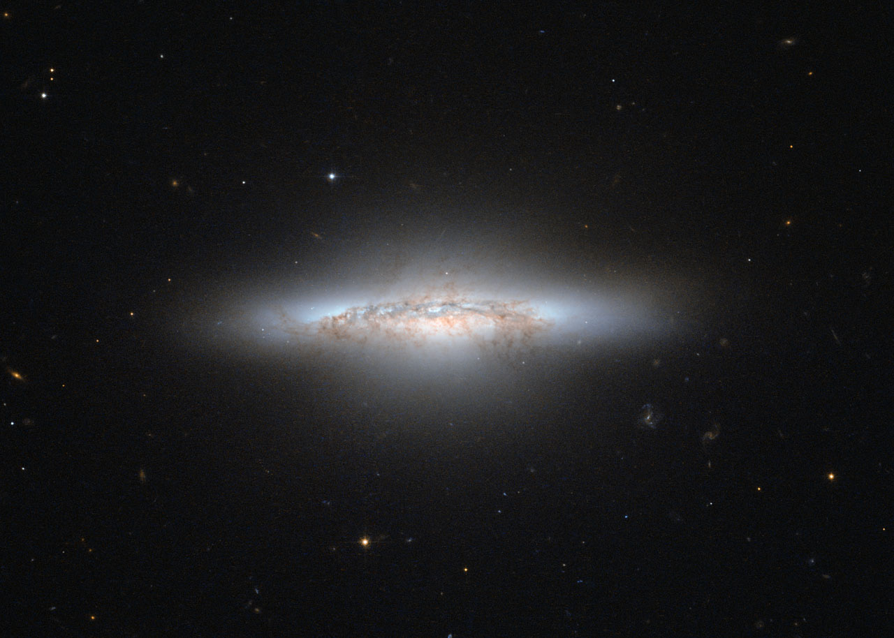 A lenticular galaxy is a type of galaxy that shares characteristics of both spiral and elliptical galaxies. It has a disk-like structure similar to a spiral galaxy but has no spiral arms. Like elliptical ones, these galaxies have fewer ongoing star formations and gas and dust in them.