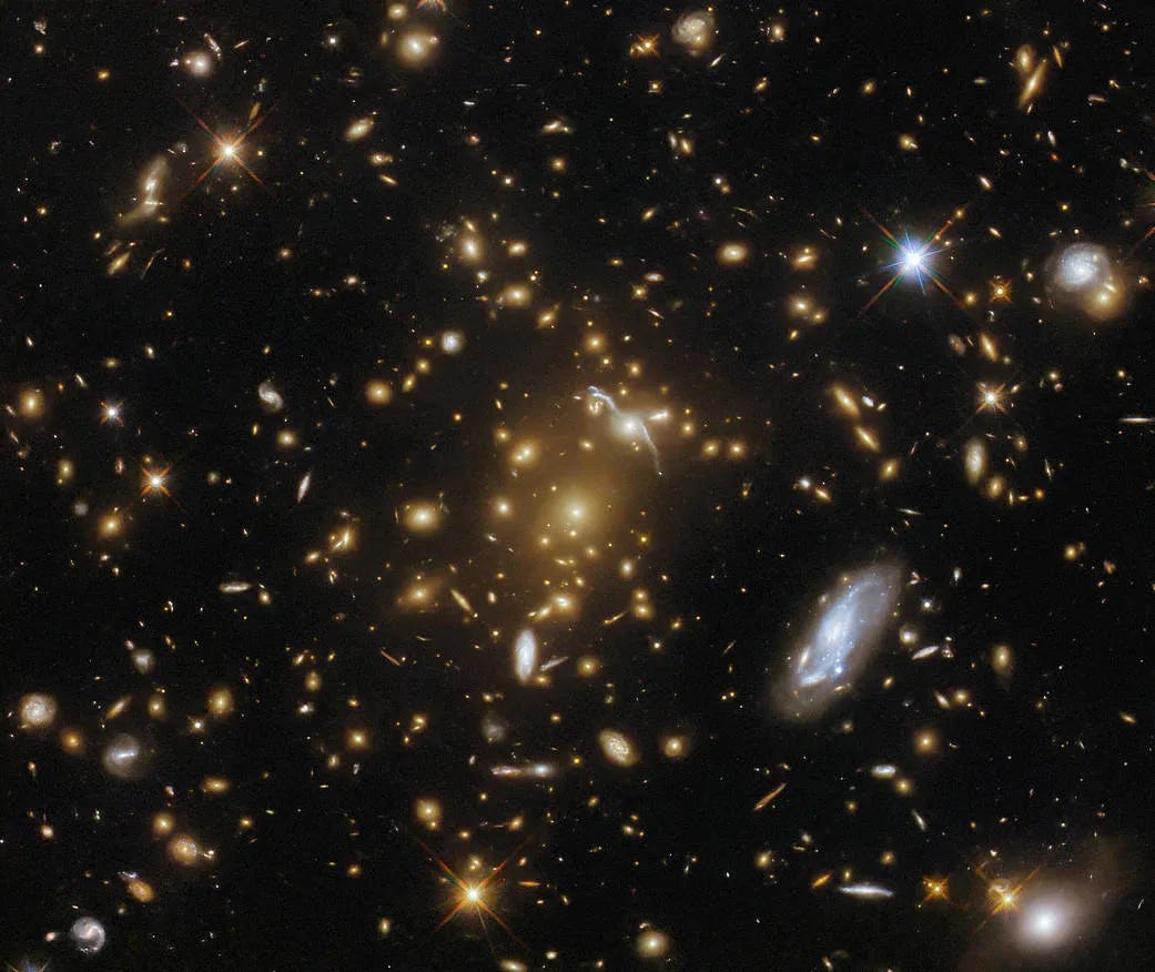 Gravitational lensing is a phenomenon caused by galaxy clusters when their gravity is so strong that it bends light coming from other galaxies which causes a distorted effect in space. Scientists often use this to their advantage as the gravitational lensing effect creates a powerful natural telescope in space that lets them see cosmic objects extremely far away.