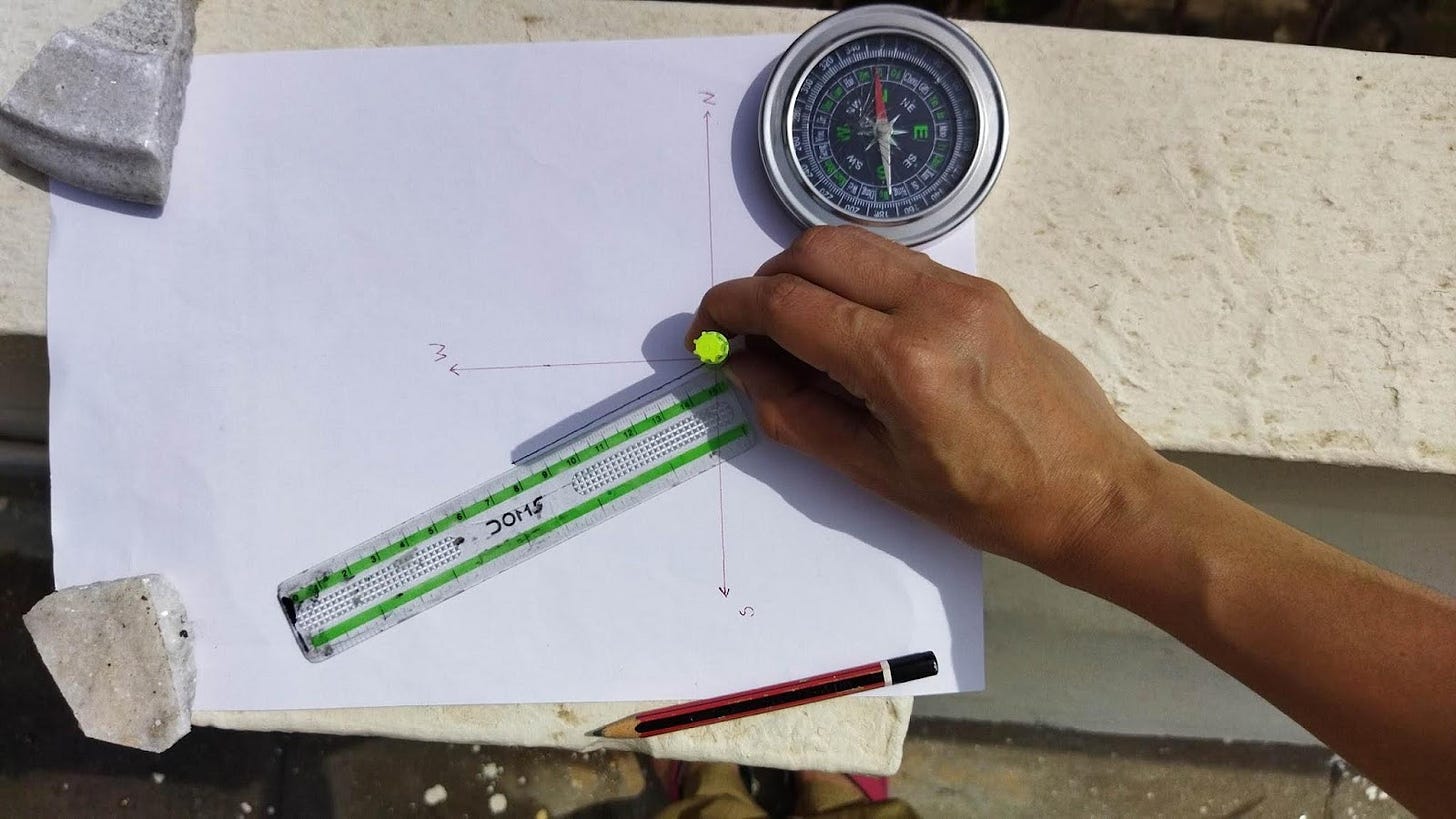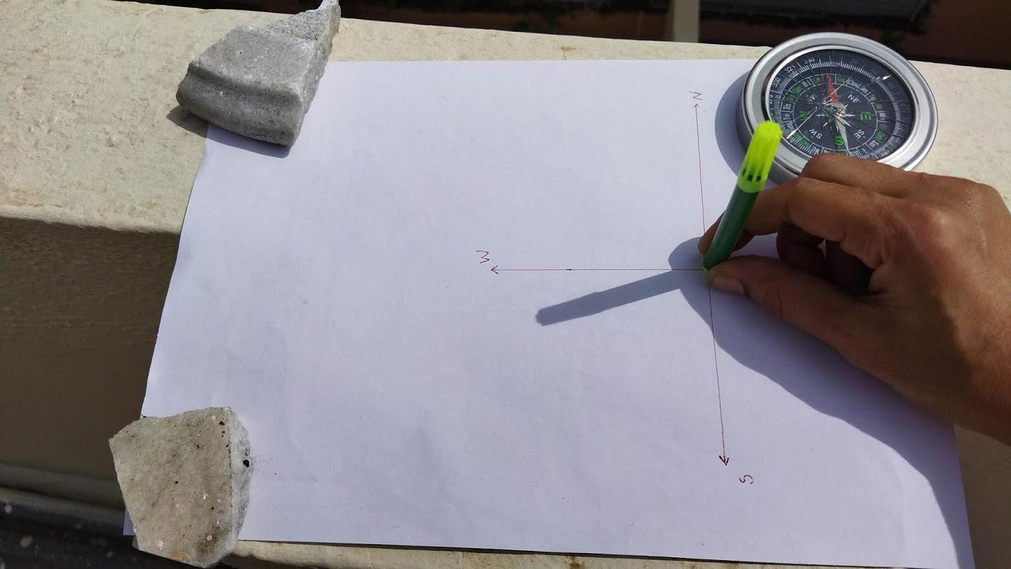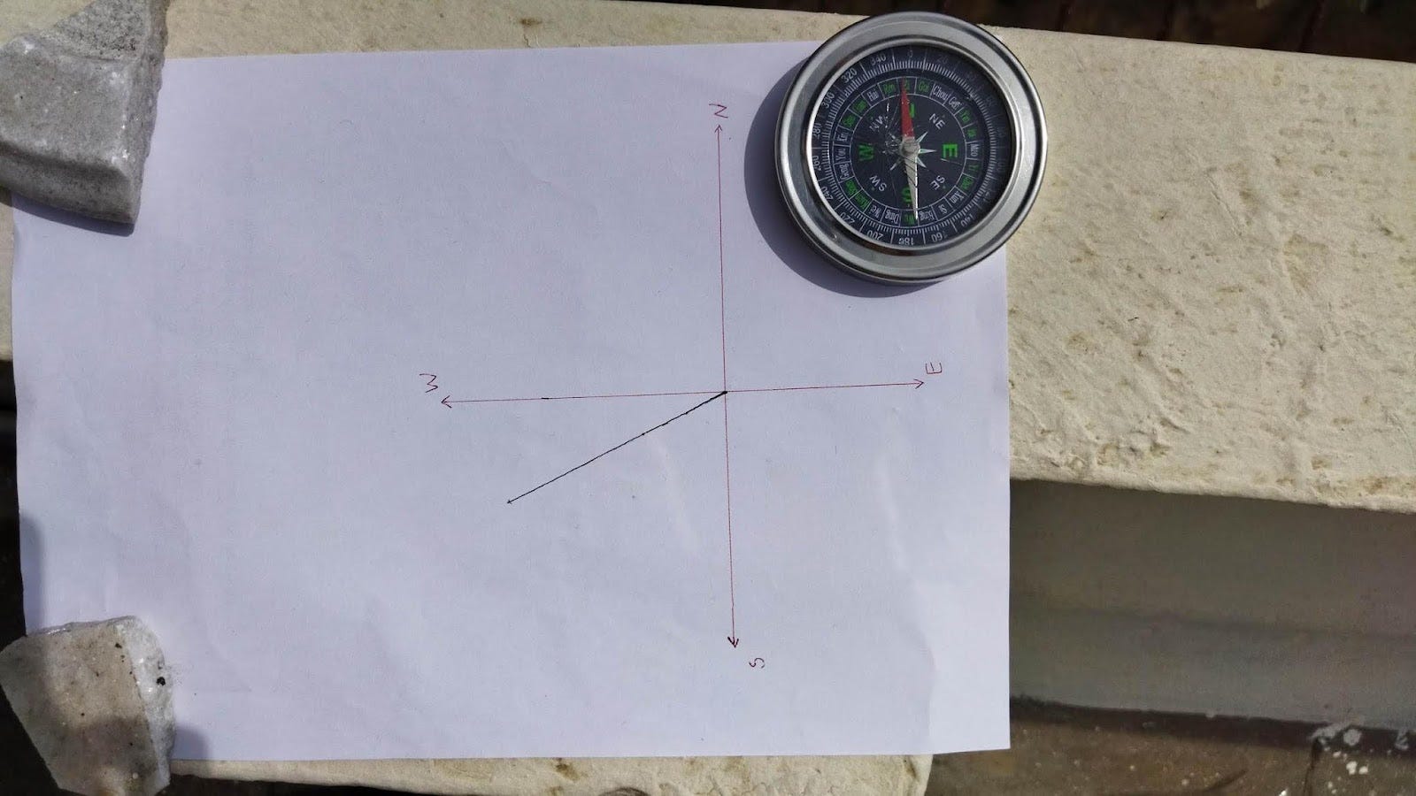 We recorded the shadow of the pen, the direction in which it was facing and the length of the shadow.