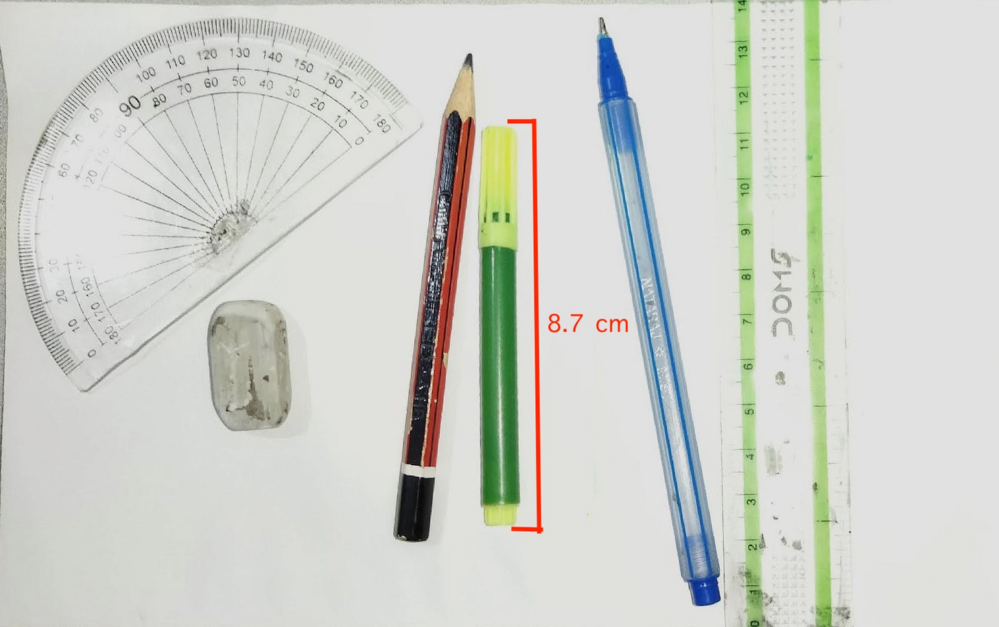A line of the same length as the shadow was drawn on the shadow of the pen.