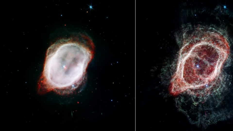 The James Webb Telescope revealed a new image of the Southern Ring Nebula. The telescope revealed that the two stars in the nebula are almost the same size.
