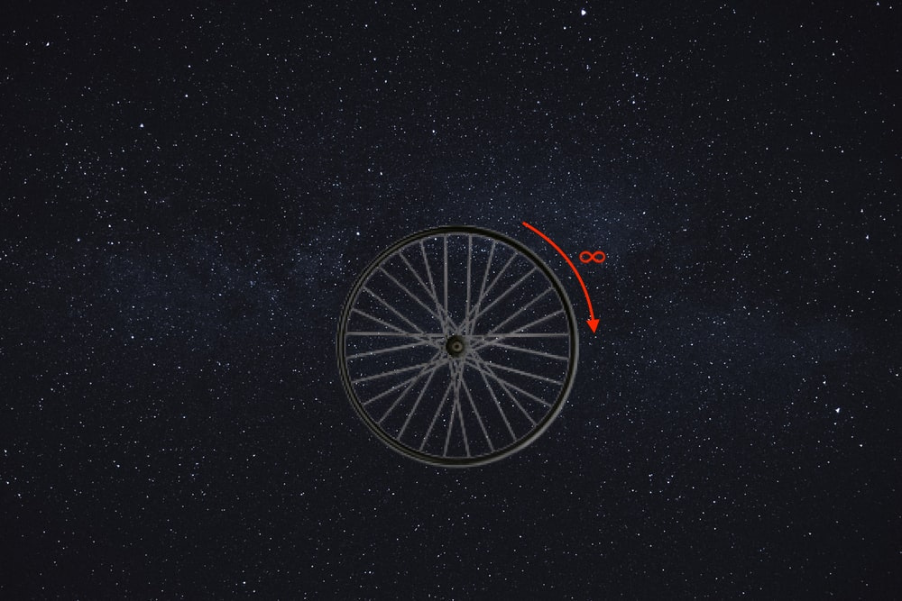 You might be wondering, why doesn’t the same work on earth? If you spin a wheel on earth, it will definitely stop after some time even if you don’t try to stop it. That is because there are other forces acting on the wheel like gravity and friction.